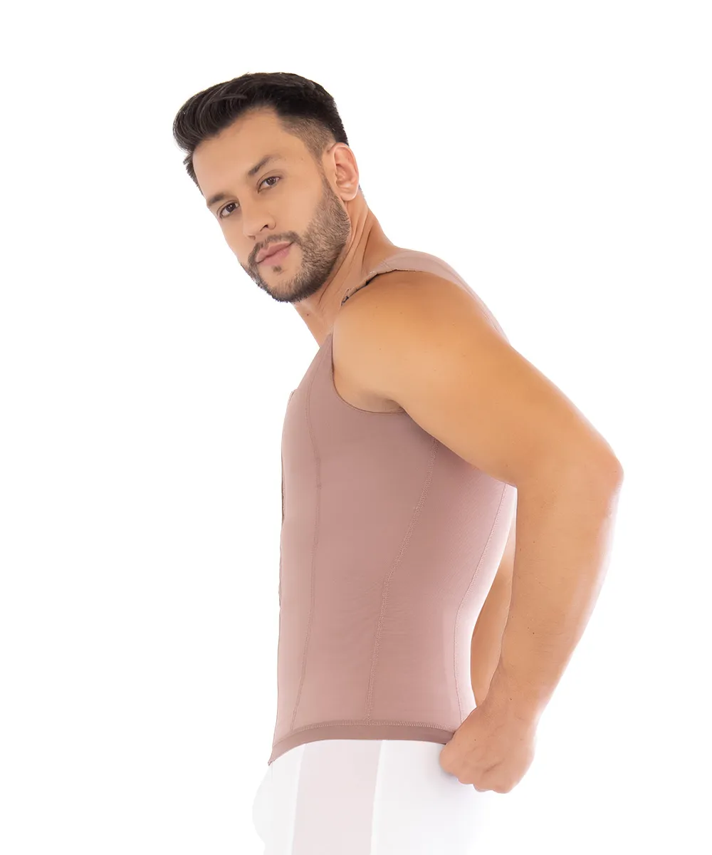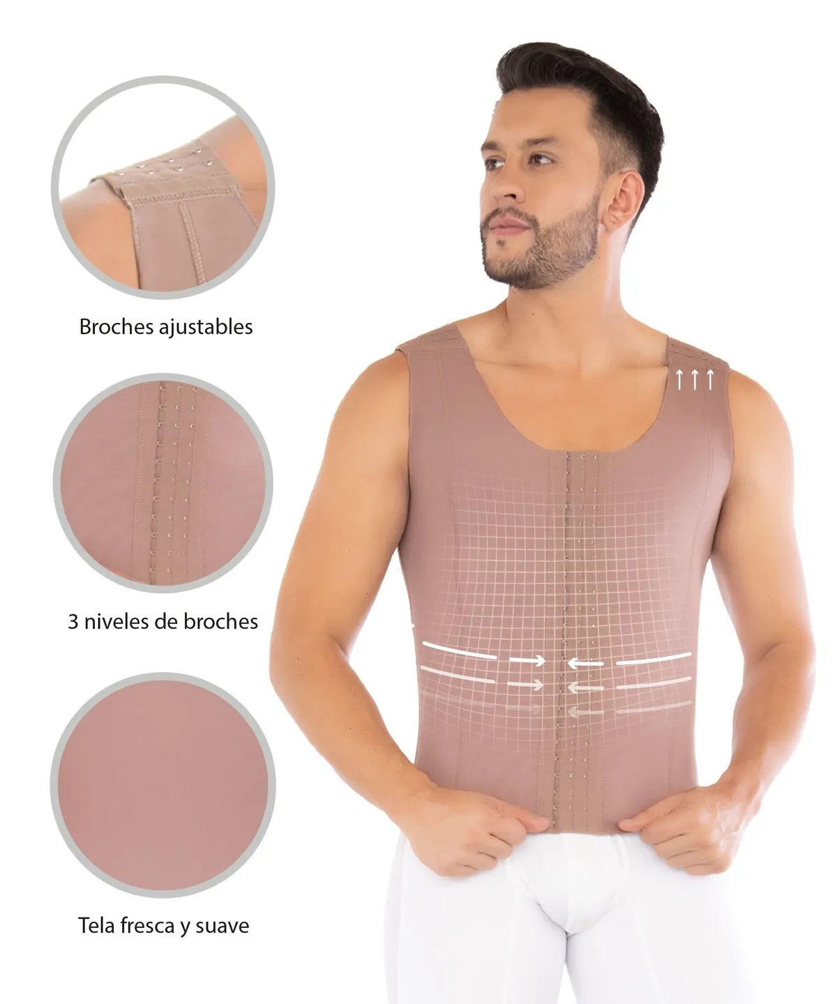 Faja tipo chaleco diseñada para postoperatorios, proporciona compresión en el abdomen, pecho y espalda. Su control alto permite una reducción visual de hasta 2 cm en el abdomen y cuenta con ajuste personalizado en los hombros con tres niveles.