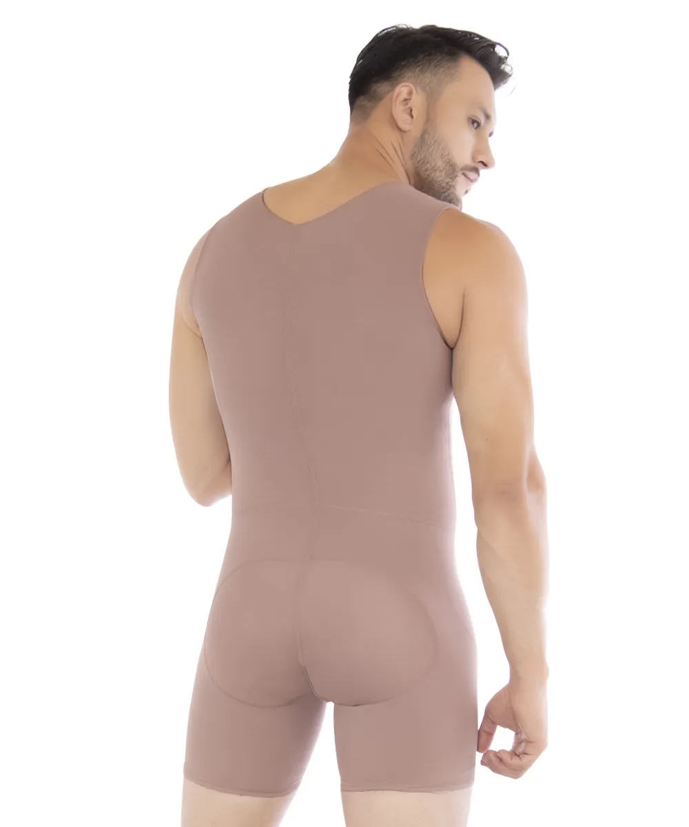 Faja masculina de control alto, perfecta para uso postquirúrgico y diario. Su tela externa asegura una compresión óptima en abdomen y cintura, mientras que la interna hidrata y nutre la piel, brindando beneficios para la recuperación postoperatoria y un efecto visual de hasta 2 cm menos.